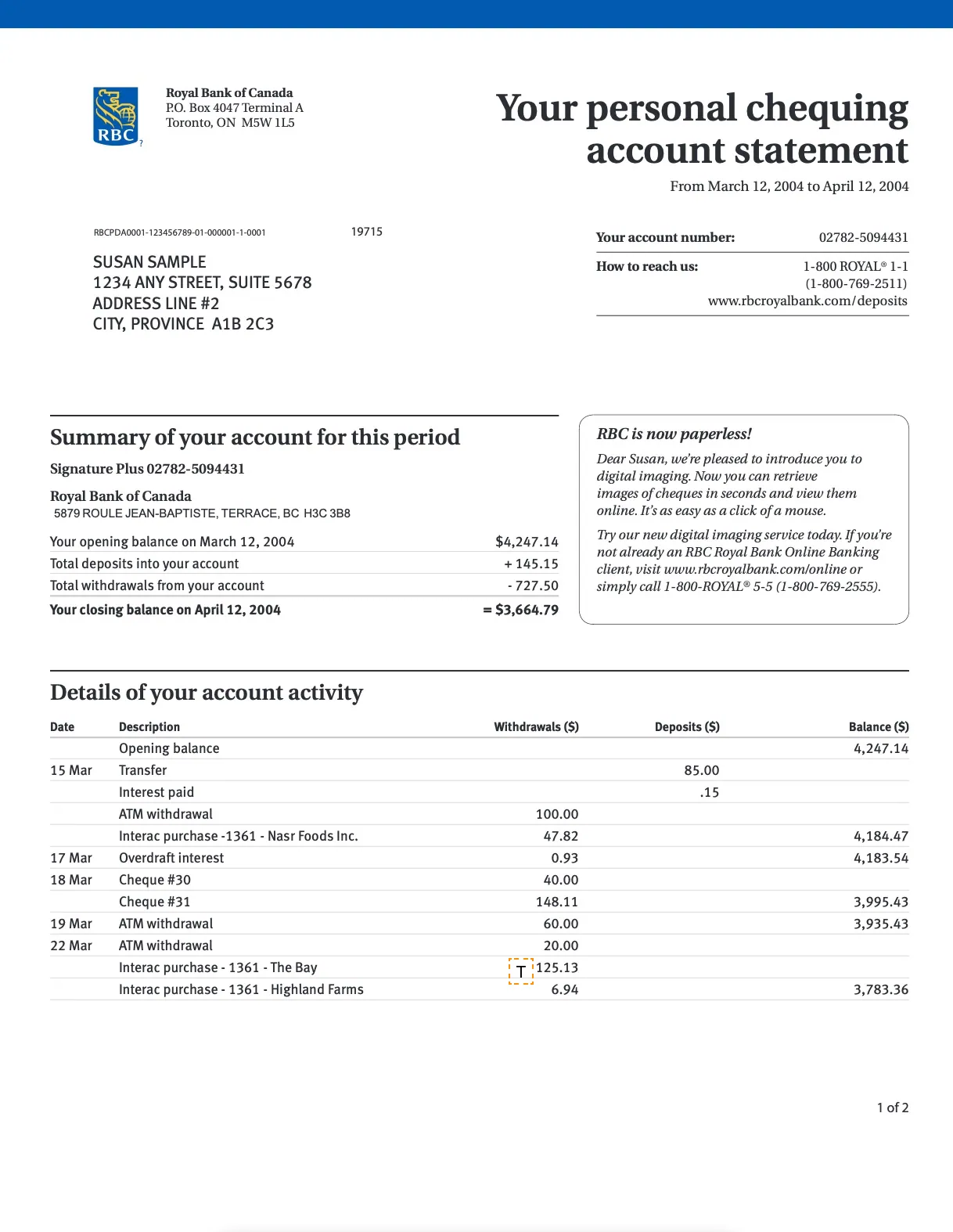 Must clearly show your name and account number.
