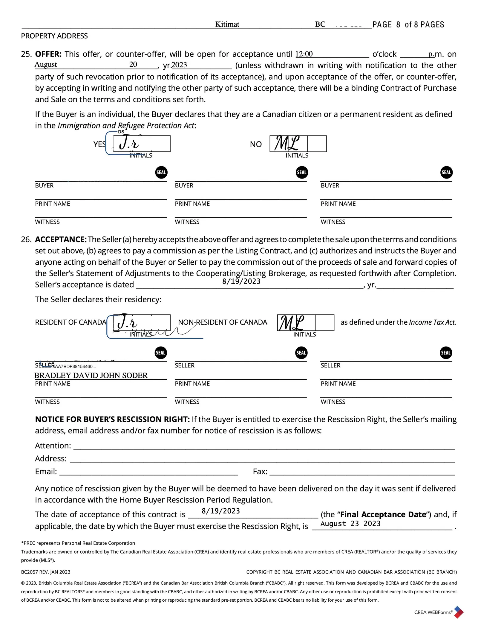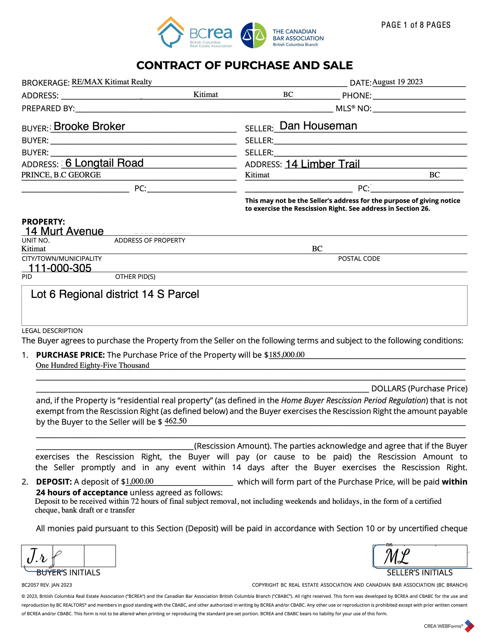 This is the core document for a purchase application. It tells the lender what you are buying, for how much, and when the closing date is.