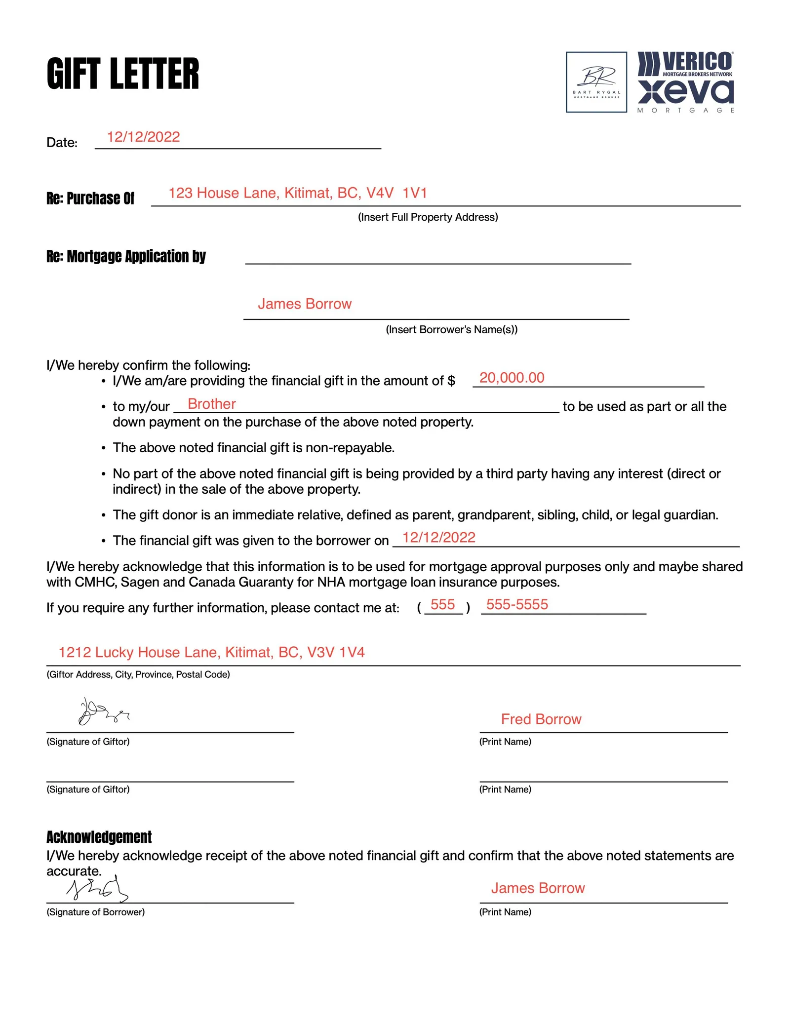 If a family member is helping you with your down payment, they must sign a standard letter confirming the money is a true gift and does not need to be repaid.