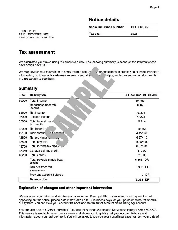 After you file your taxes, the CRA sends you a Notice of Assessment. It confirms the amount of tax you owe or the refund you will receive, and crucially, your total income (Line 15000).