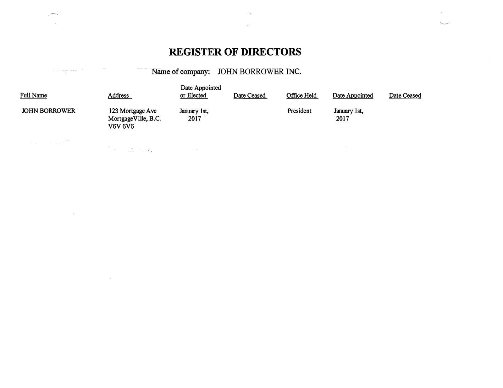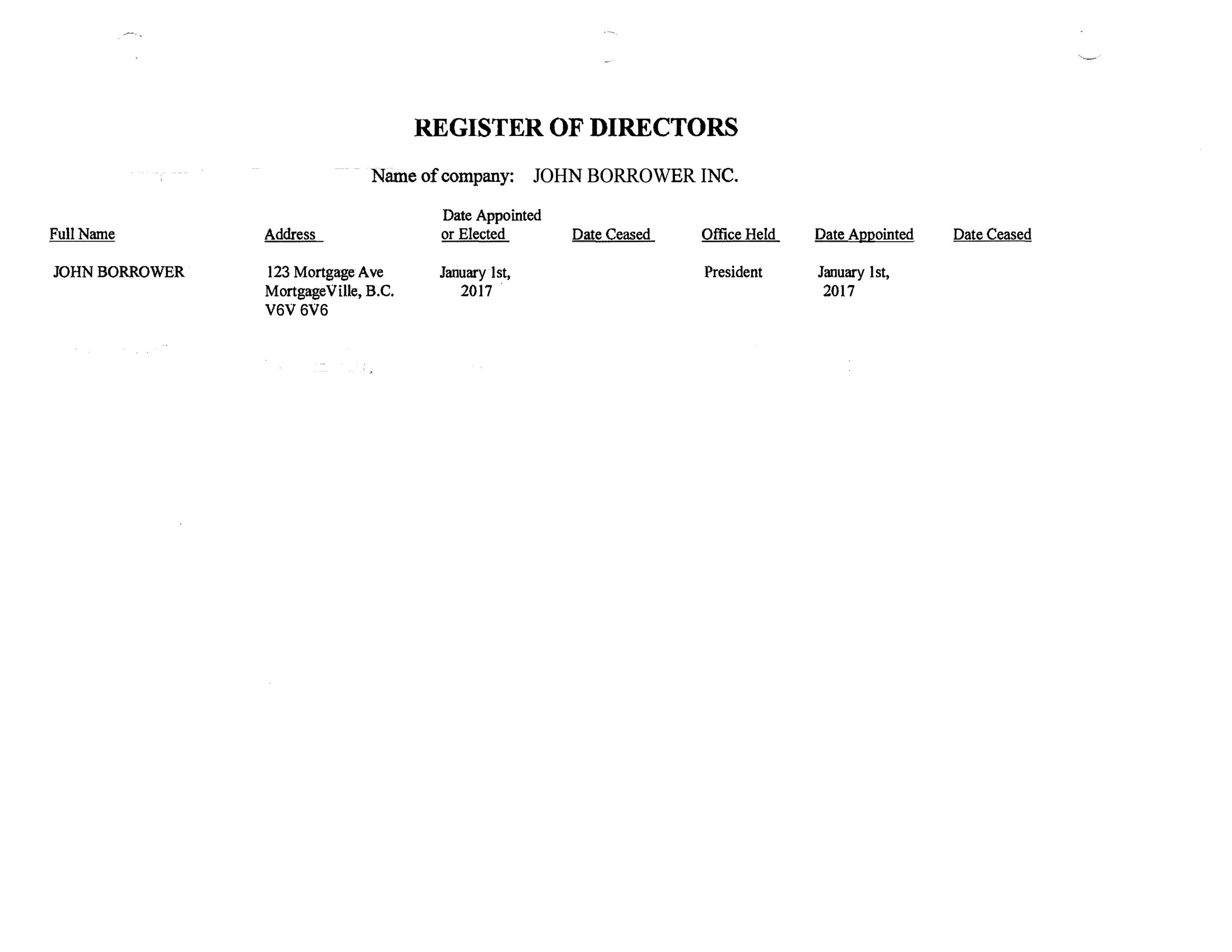 Must show corporation name and director list.