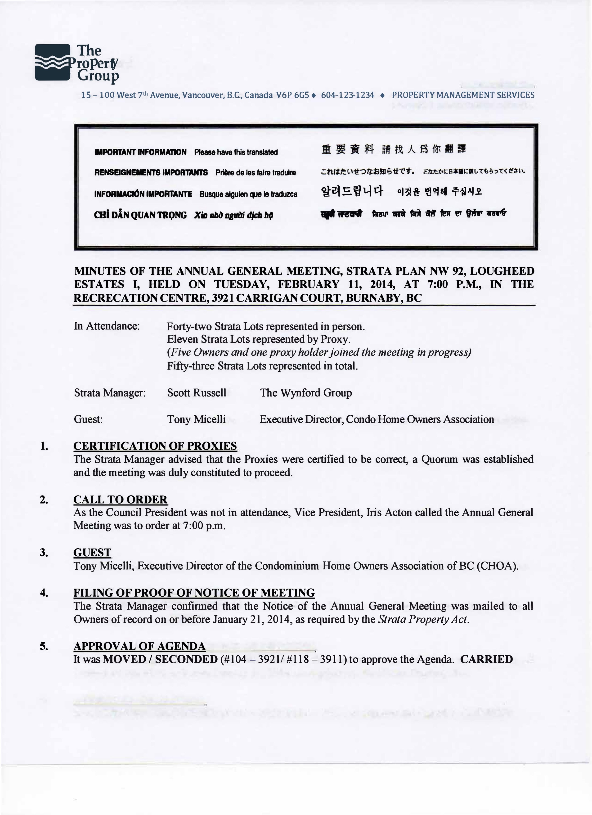 Strata General Meeting Minutes