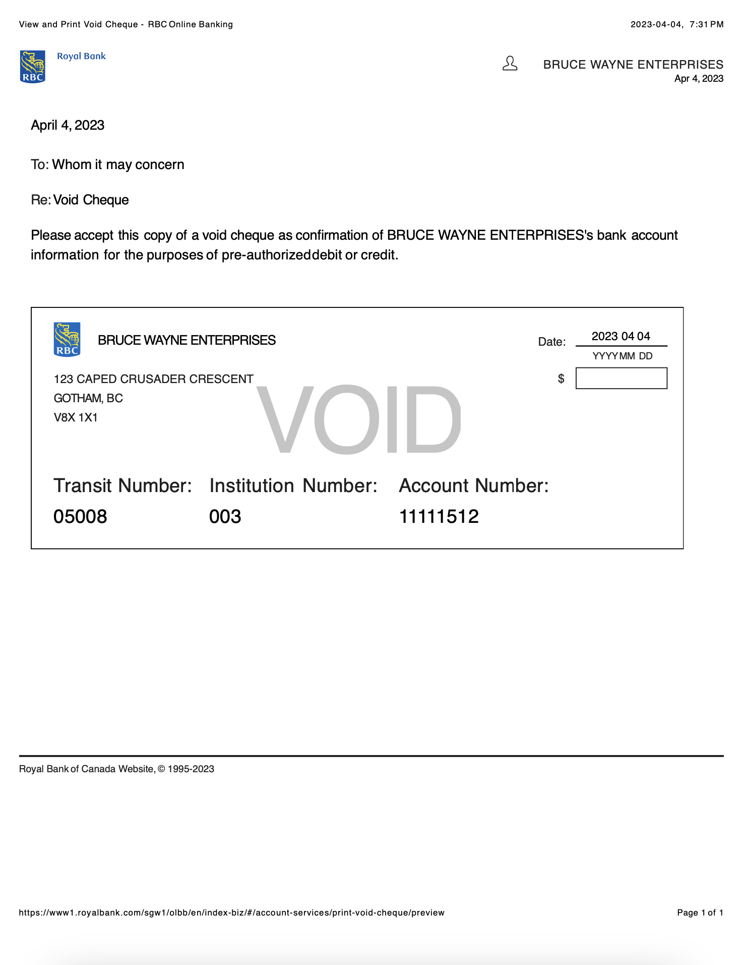 VOID Cheque